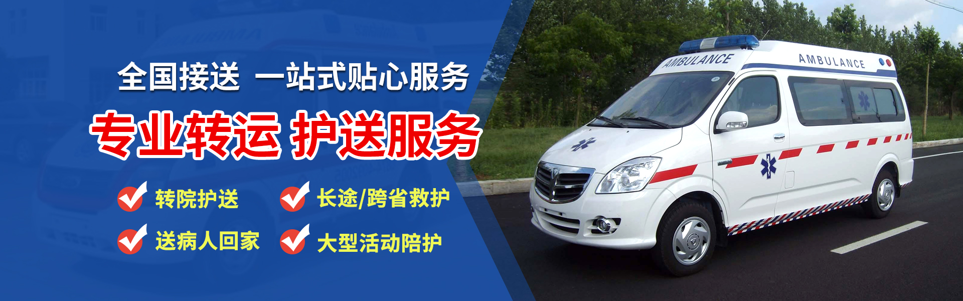 中国非急救转运网,正规救护救援公司,专业提供长短途救护车出租服务,愈后出院,病重转院,跨省长途病人专业救护及护送服务。长途120急救车租赁、长途急救车租赁、120急救车租赁、出租120救护车,长途急救车租用,儿童监护车租用,急救车租赁、急救车租赁公司方便全国各省市各类患者长途急救车转运转诊等需求,救护服务有限公司配备多辆成人长途重症监护型急救车。